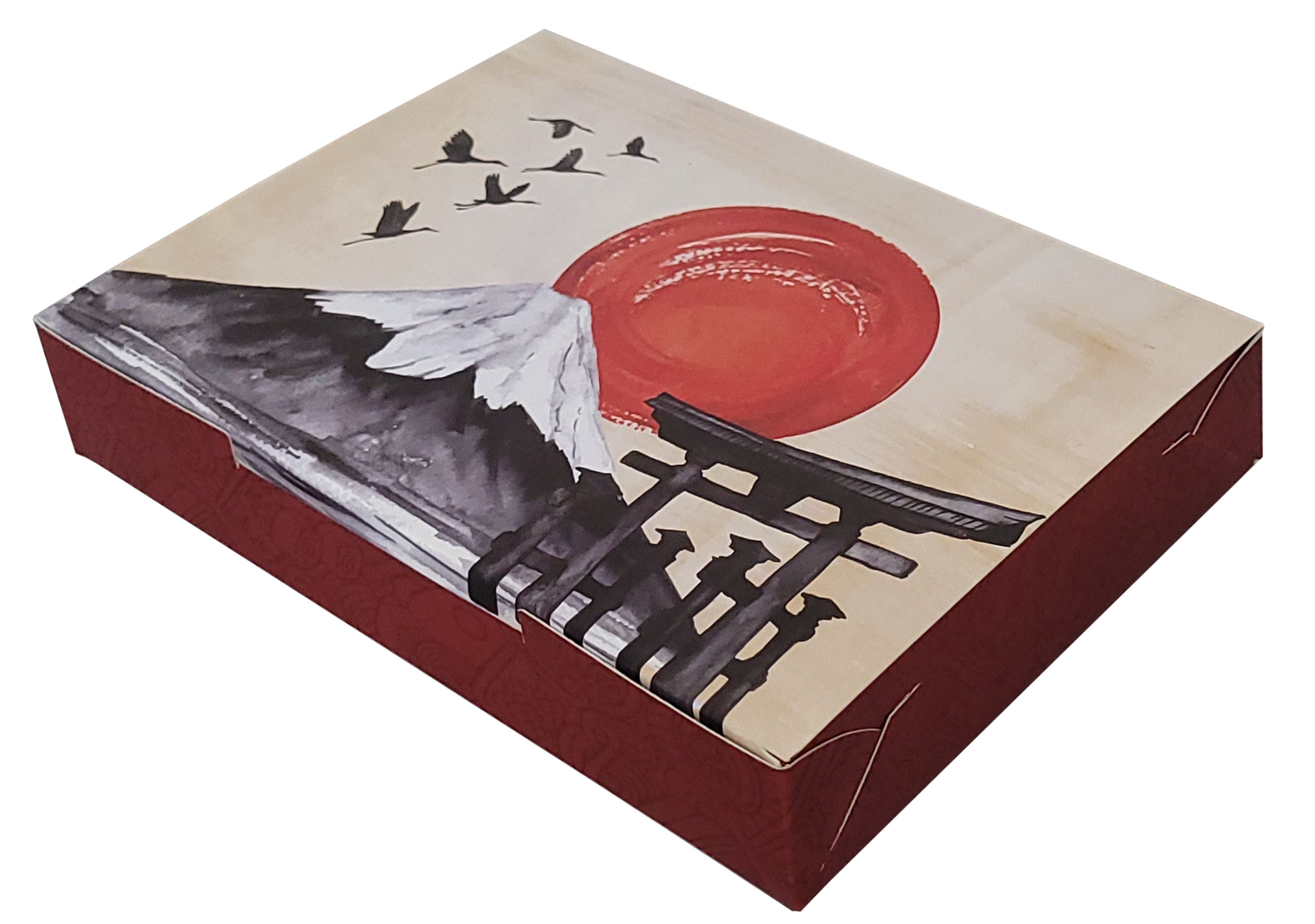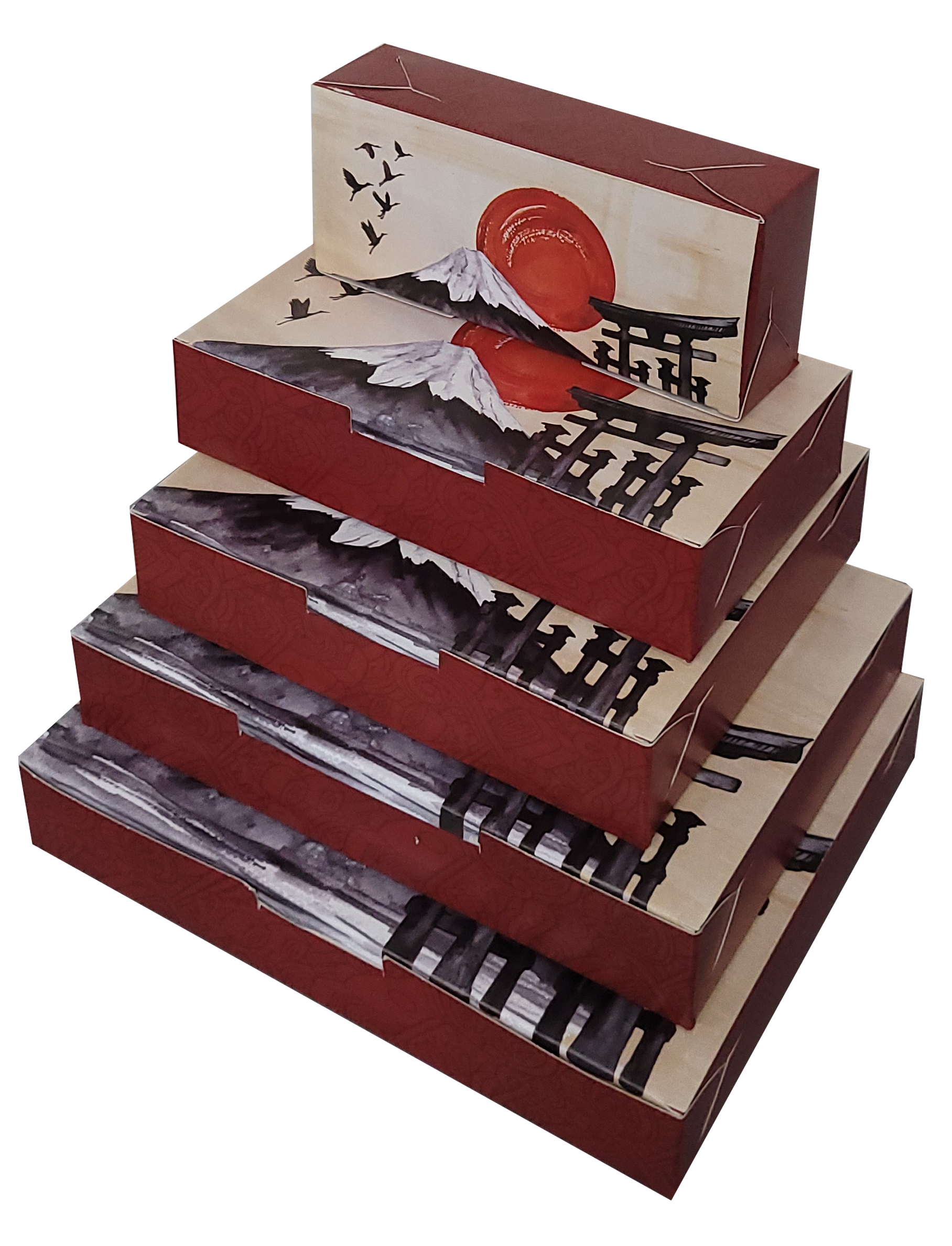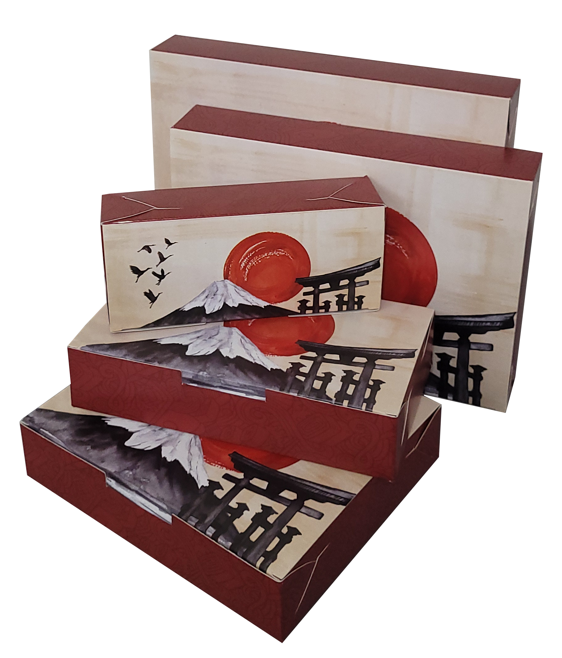 A Caixa 02C Oriental é uma embalagem prática e elegante, ideal para o armazenamento e transporte de alimentos da culinária oriental. Com estampa temática em vermelho e creme com desenho oriental, oferece uma apresentação atrativa que valoriza os pratos e transmite um visual profissional para restaurantes e serviços de delivery.