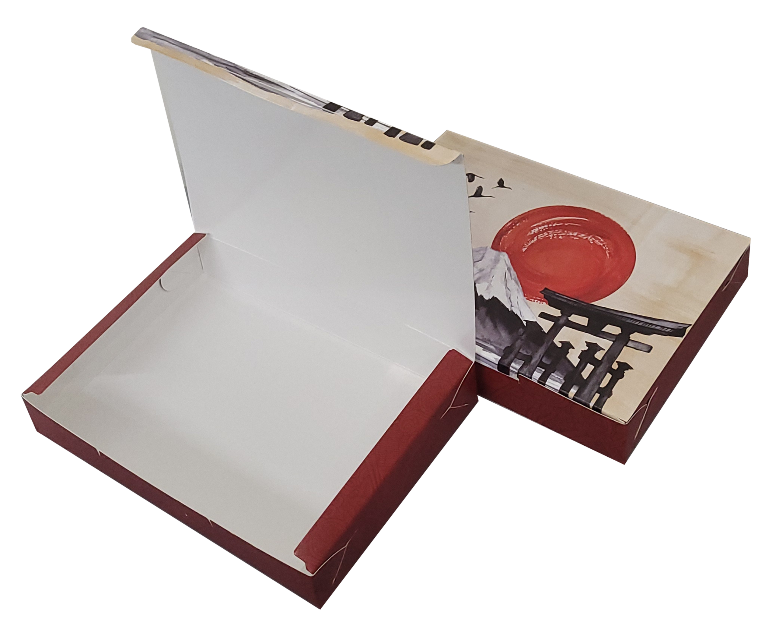 A Caixa 05 Oriental é uma embalagem ideal para o armazenamento e transporte de alimentos da culinária oriental, oferecendo praticidade e uma apresentação elegante. Com estampa temática em vermelho e creme com desenho oriental, valoriza os pratos e proporciona um visual profissional para restaurantes e serviços de delivery.